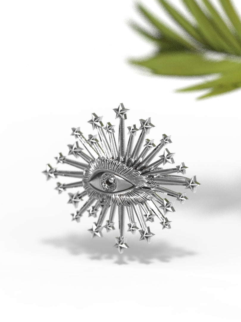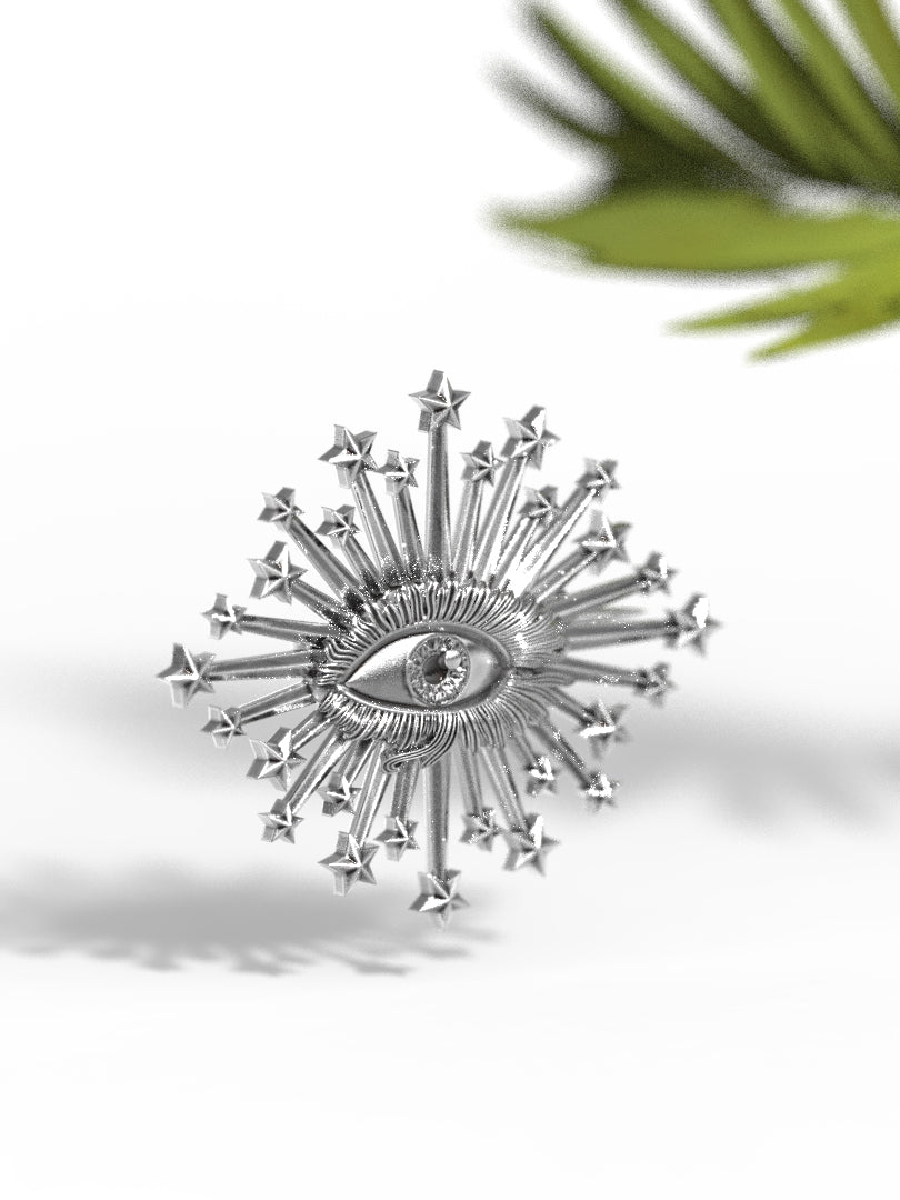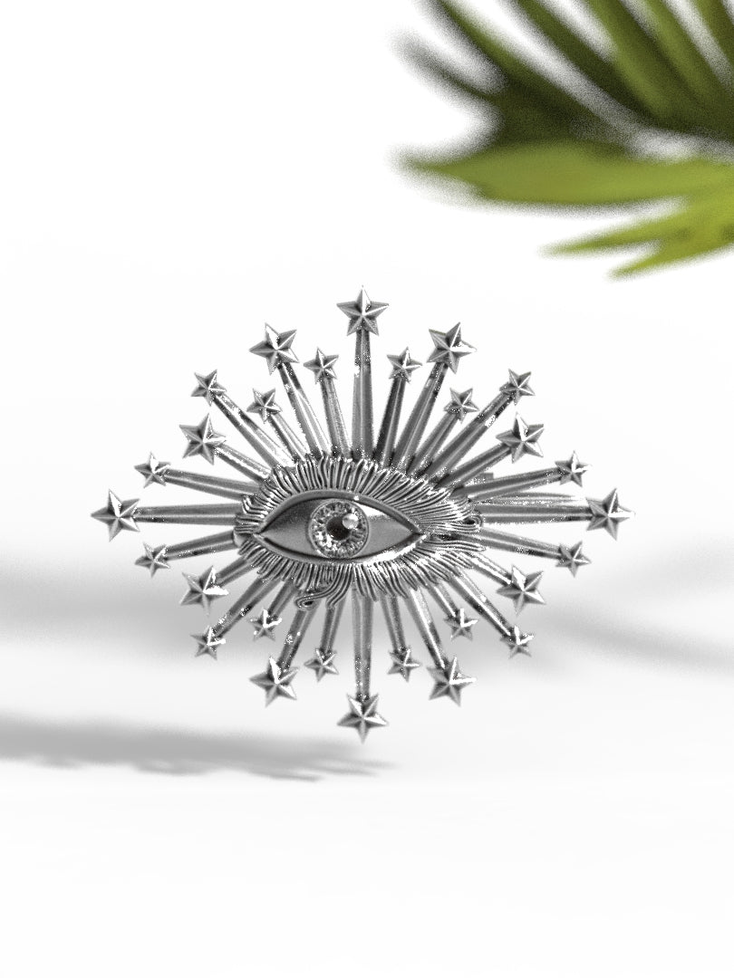 'You are the Apple of my Eye' brooch is from the 'You are my Universe' collection. This stunning piece features a beautiful eye shape, adorned with long lashes and surrounded by small stars. Special gift box included.