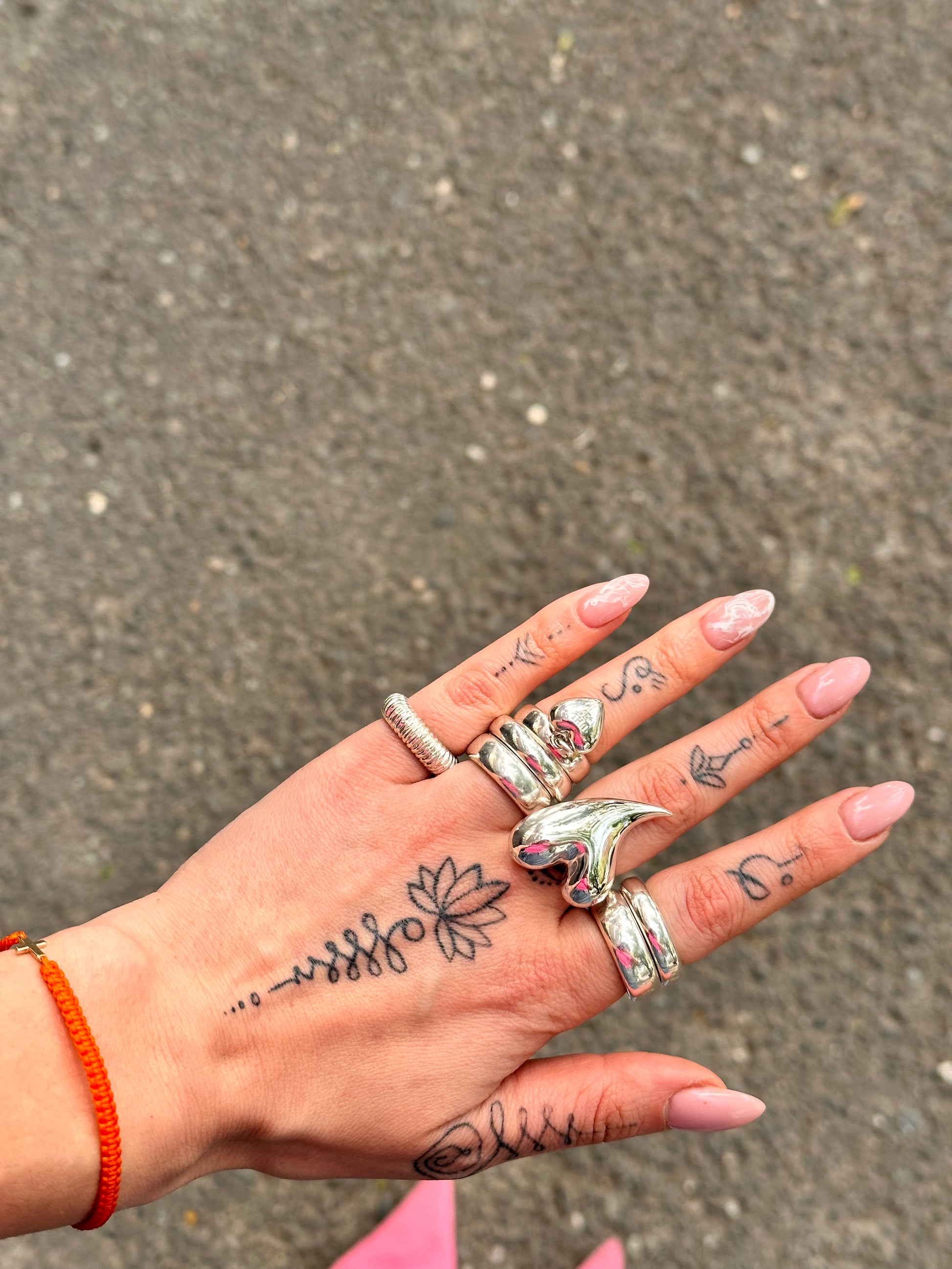 This medium-sized "Chunky Heart" ring features a bold and stylish design, perfect for adding a touch of personality to any outfit. The chunky heart shape makes a statement while exuding a sense of confidence and individuality. Elevate your look with this eye-catching accessory.