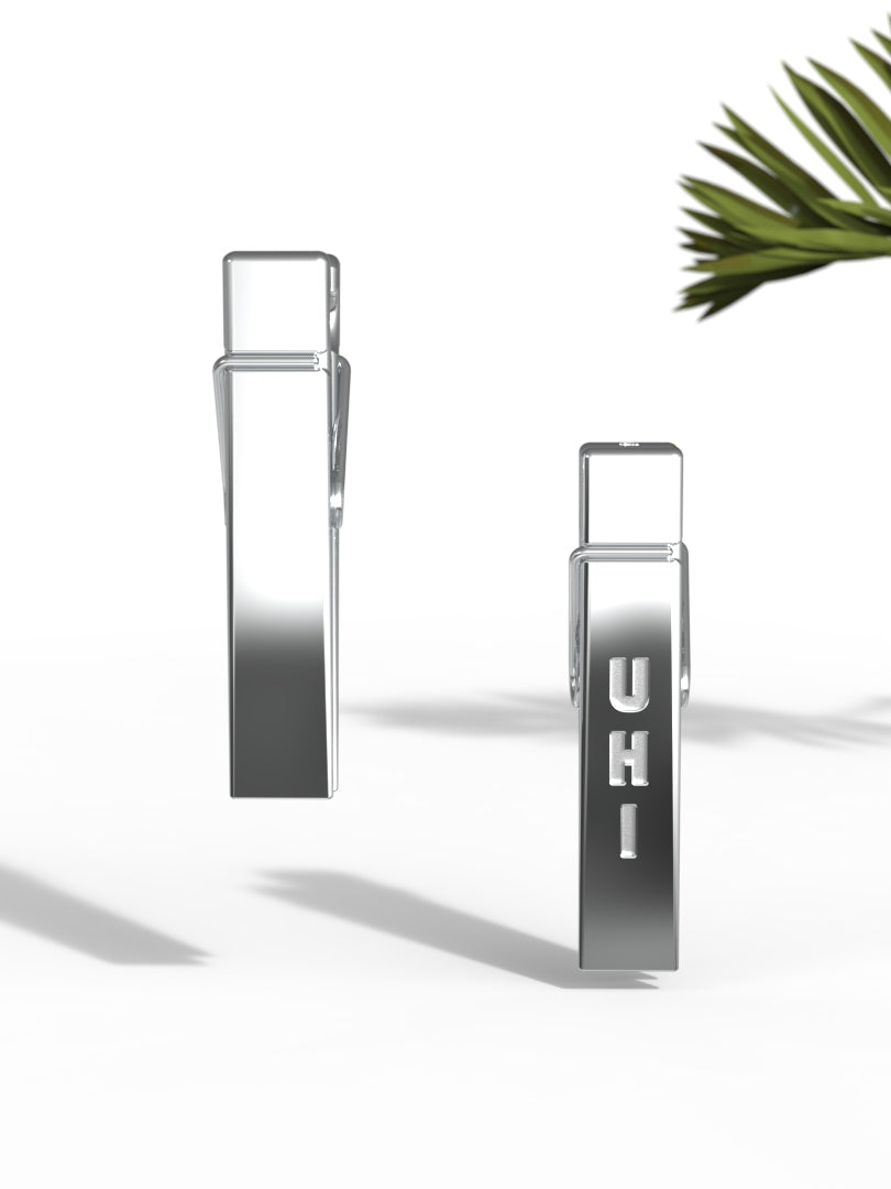Minimalist geometric earrings with a clean architectural silhouette. Inspired by the form of a metal clip, the design is straightforward, modern, and easy to wear every day. The straight lines and precise edges give the piece a confident, structured look while keeping it lightweight and comfortable.