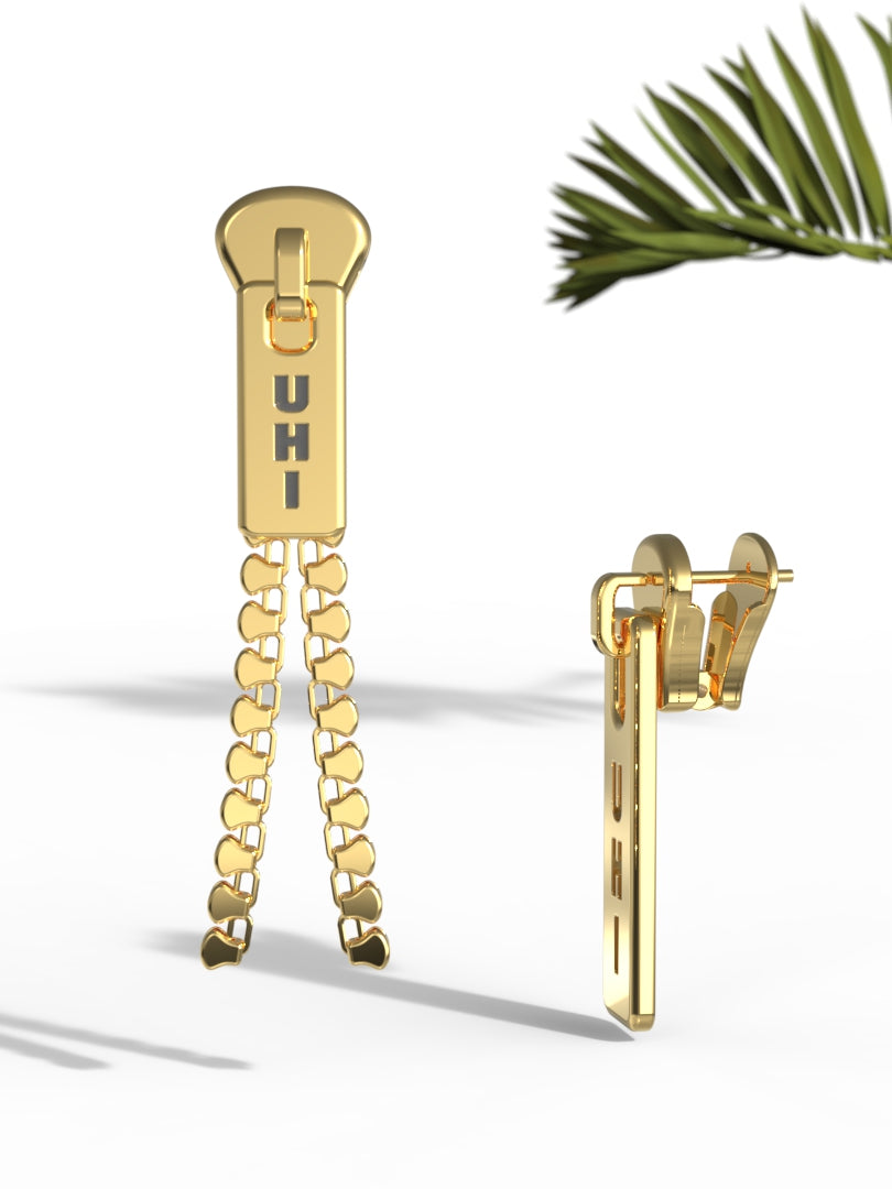 Modern earrings inspired by the clean, linear form of a zipper pull. The design is playful but minimal, with a straightforward silhouette and smooth metallic finish. Lightweight and easy to wear, they add a subtle twist to everyday style while keeping the look simple and polished.