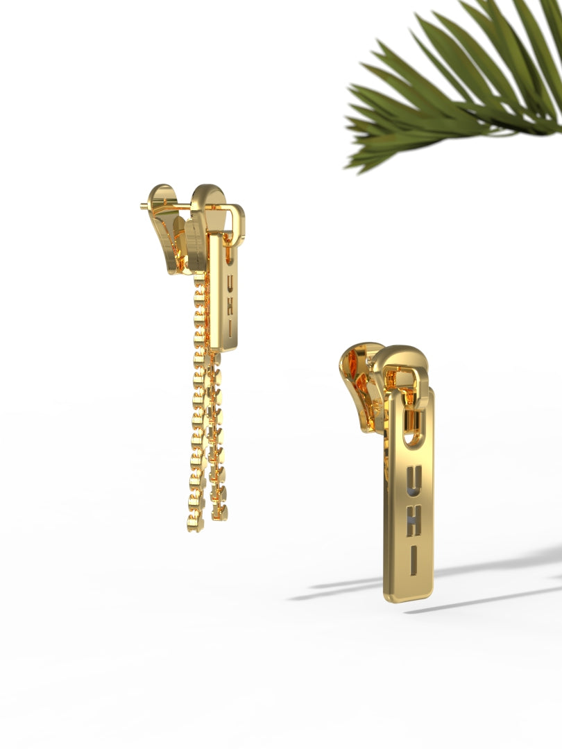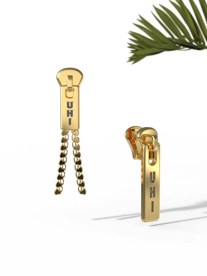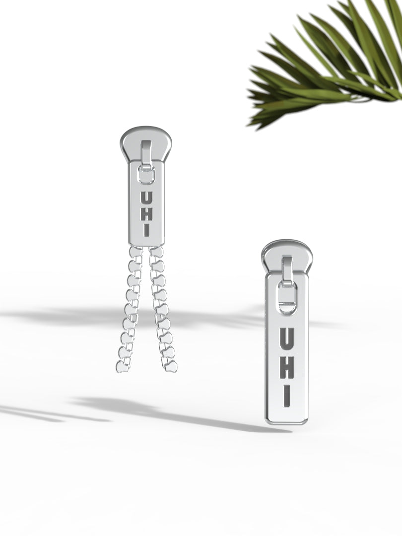 Modern earrings inspired by the clean, linear form of a zipper pull. The design is playful but minimal, with a straightforward silhouette and smooth metallic finish. Lightweight and easy to wear, they add a subtle twist to everyday style while keeping the look simple and polished.