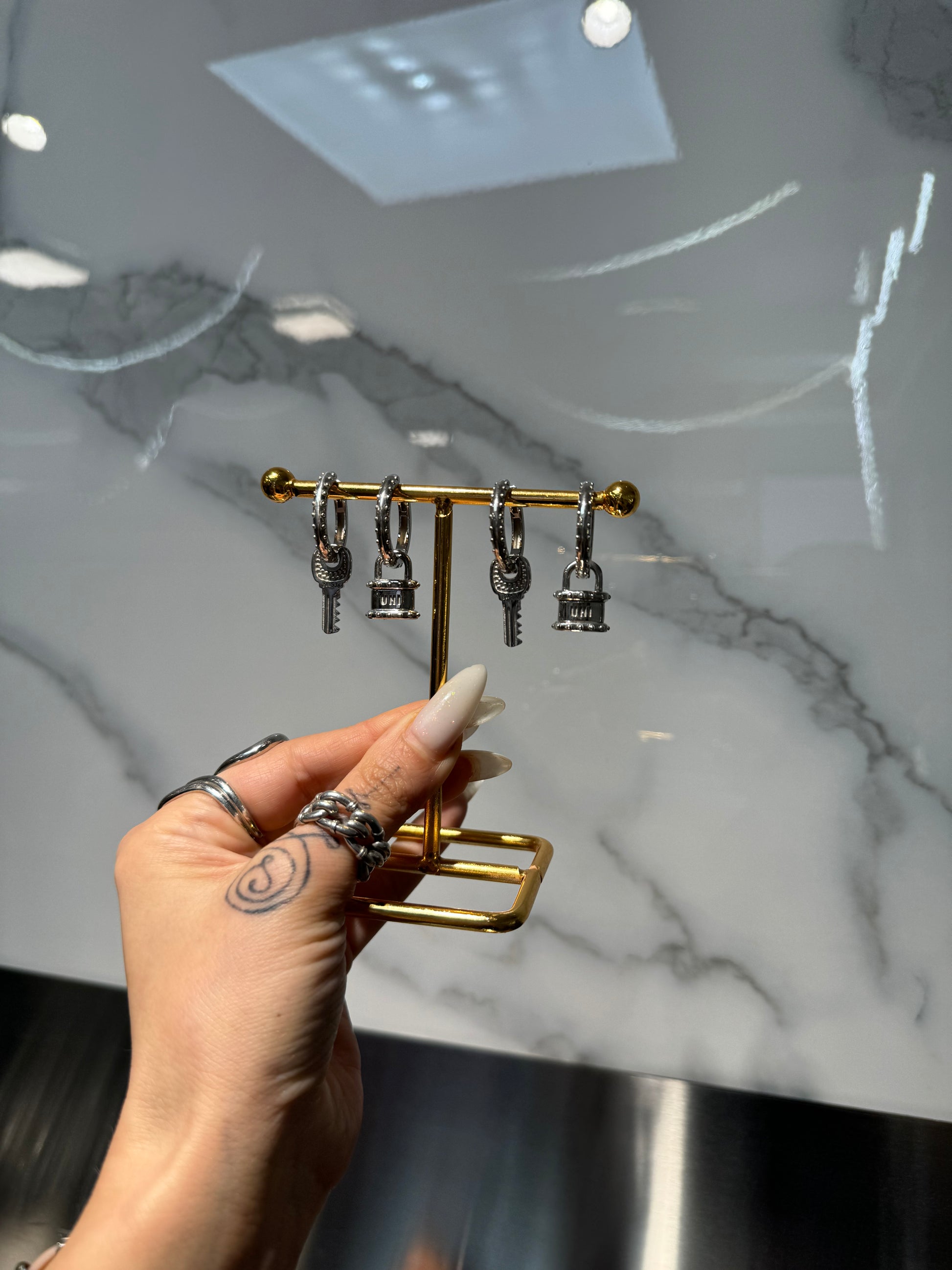 Նուրբ, բայց իմաստավորված՝ այս ոչ սիմետրիկ զույգ ականջօղերը համադրում են կողպեքն ու բանալին։ Սիրո, վստահության ու անձնական կապի խորհրդանիշներ։ Մեկում՝ կողպեքն է, մյուսում՝ բանալին։ Միասին՝ պատմություն այն ամենի մասին, ինչ պահում ենք մեր մեջ և այն, ինչ բացում ենք՝ սիրո համար: