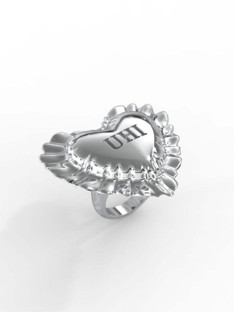 Enhance your style with our fashionable Ravioli Heart Shape Ring. The trendy design adds a unique touch to any outfit.