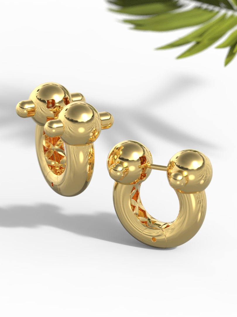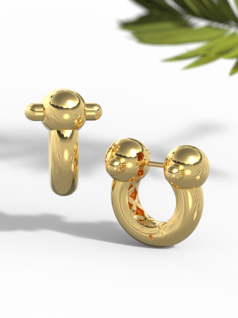 These 'Vogue' Minimalistic Earrings feature sleek spheres on both sides, adding a chic and modern touch to any outfit.